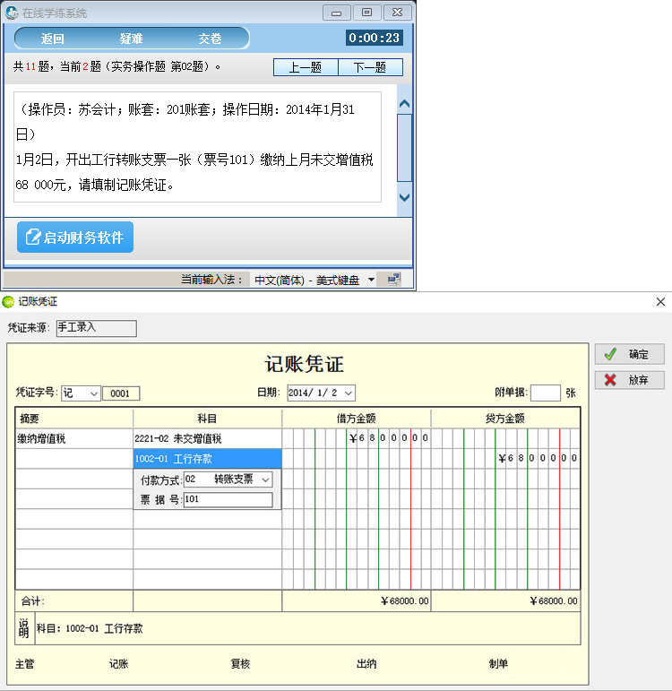这题是实物操作题中较难的题目(难题占10%左右,其余都是送分题),考验考生对会计分录的理解。但如果你《会计基础》学的不错,那这题对你来说便是轻而易举。